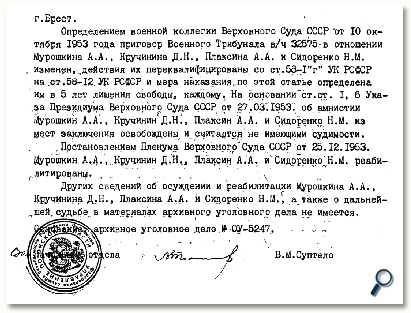 22.5.1952Verurteilung durch das Militärtribunal in Potsdam zu zehn Jahren Freiheitsentzug